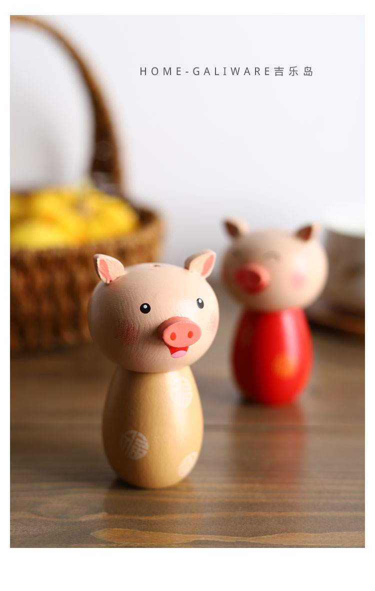 吉乐岛 创意可爱小猪牙签筒家用木质牙签罐 客厅时尚牙签筒牙签盒